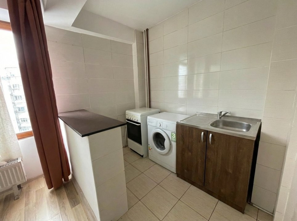 Amplasata la etajul 8 din 10, ofera lumina naturala buna si un plus de intimitate. Spatiul este configurat tip open space,rezultând un spatiu practic si usor de amenajat, dispune de boiler,masina spalat rufe ,frigider,aragaz si tv .