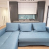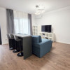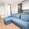 Bucataria deschisa cu livingul, departajata de acesta cu bar, este mobilata si utilata cu tot ce este necesar. Livingul este minimalist si ultramodern si, odata cu canapeaua extensibila aflata in fata comodei pe care este amplasat un TV Led, vine la "pachet" si cu o zona de "dressing" suficient de incapatoare pentru cerinta de spatiu pentru haine.