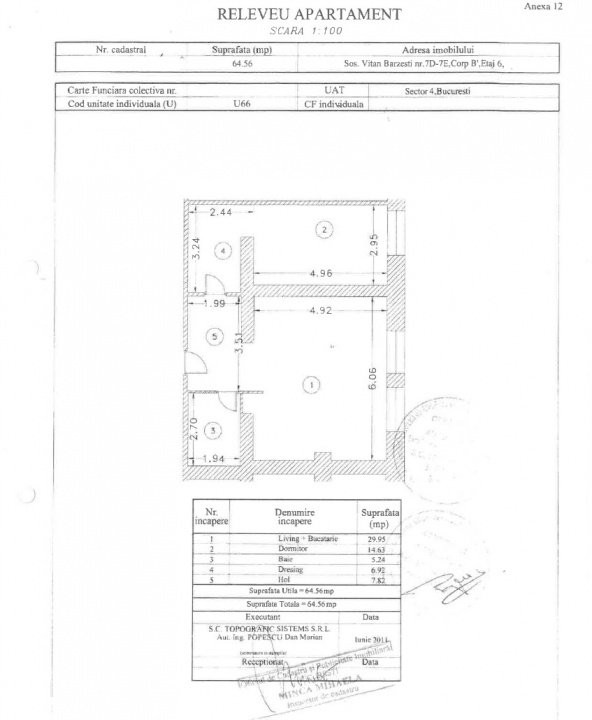 Vă propunem spre vânzare un apartament cu 2 camere, situat într-un bloc construit în 2008, în complexul cunoscut astăzi sub numele Rin Grand Residence, pe Șoseaua Vitan-Bârzești nr. 7D, în Sectorul 4 al Capitalei – o zonă dinamică, cu acces rapid la transport și facilități urbane esențiale.