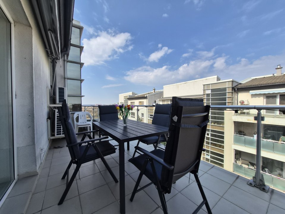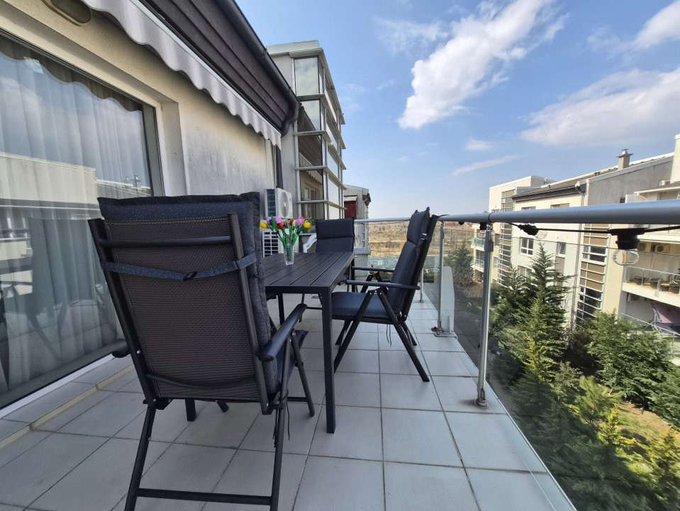 Unul dintre punctele forte ale proprietății este zona exterioară: apartamentul beneficiază de o terasă generoasă, care înconjoară parțial locuința și oferă acces din living și din dormitorul matrimonial către un balcon foarte drăguț, creând un spațiu ideal pentru relaxare.