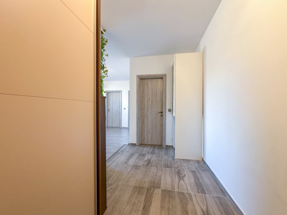 Apartamentul are o suprafață de 60,74 mp utili + un balcon 5,60 mp, și următoarele dotări/caracteristici: