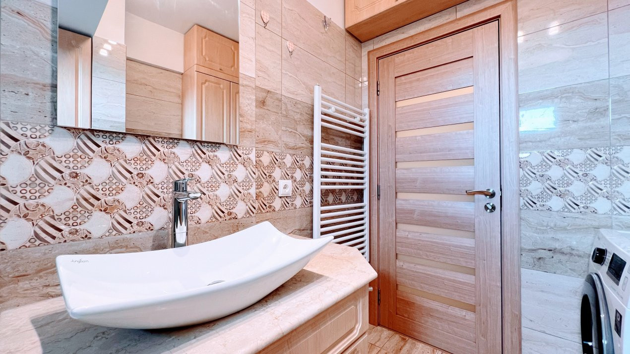 Apartamentul a fost achiziționat la roșu și amenajat integral cu materiale de calitate superioară: