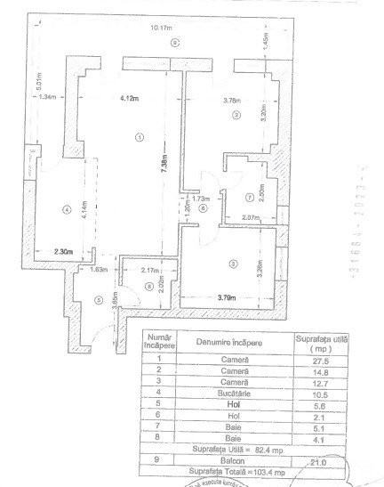 1 Apartament cu 3 camere (82 mpu + 21 mp terasa)