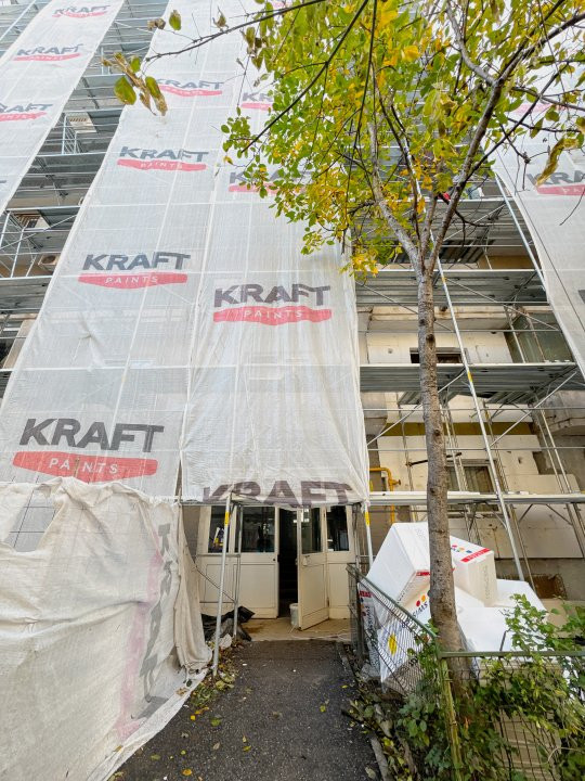Reabilitarea termica se realizeaza cu materiale de inalta calitate si solutii tehnologice moderne, orientate catre eficienta energetica si confortul termic al locatarilor. Fatada este izolata cu placi de polistiren expandat EPS 120, cu grosime de 10 cm, un material cu rezistenta ridicata la compresiune si performanta superioara in reducerea pierderilor de caldura. Aceasta solutie contribuie la mentinerea temperaturii constante in interior si la scaderea considerabila a costurilor de incalzire si racire.