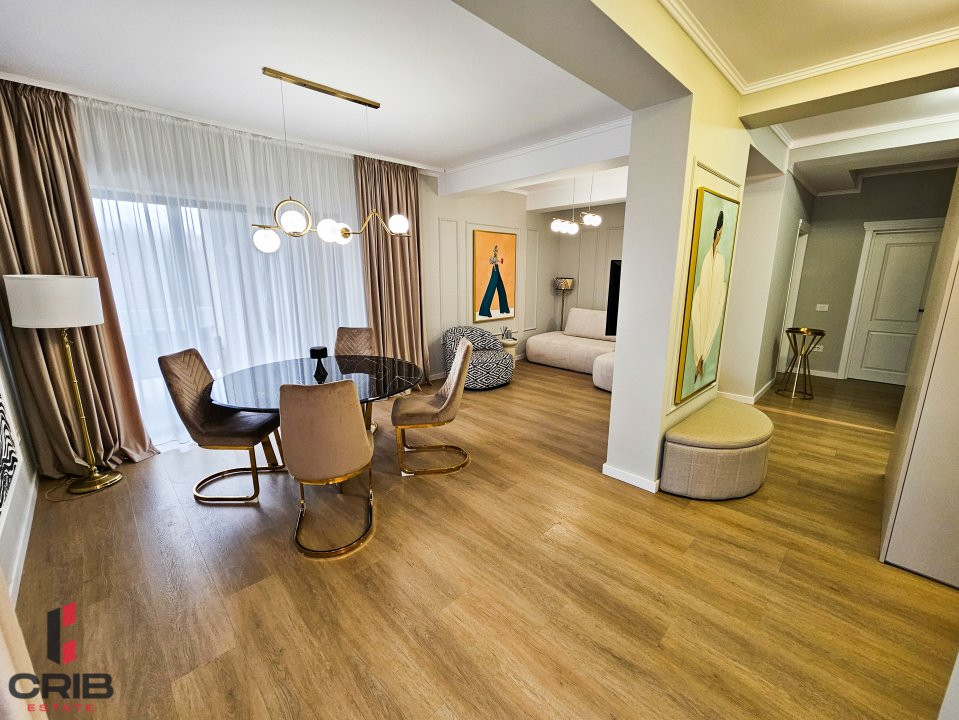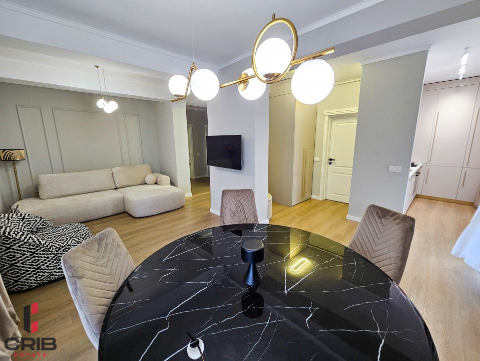 Apartament de lux cu 3 camere, amenajat integral în 2025 cu designer de interior, situat în Pipera, in proximitatea Scolii Americane. Proprietatea a fost locuită putin timp, ceea ce înseamnă că se prezintă într-o stare foarte buna cu uzură minimă — practic ca nou.