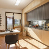 Bucataria de 12.70mp, cu acces din vestibul si din zona de sufragerie, are o suprafata care iti permite sa inviti prietenii la o cina informala, sa prepari bunatati in timp ce beti un pahar de vin in jurul mesei. Fiind o camera inchisa, poti gati orice iti place, fara sa se simta in restul casei. Pe terasa bucatariei (6.20mp) poti sa-ti bei cafeaua in diminetile senine, iar pentru musafiri exista un grup sanitar spatios, de aproape 3mp.