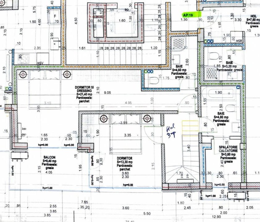 - Pardoseala calda va fi comandata on/off de termostat zonal wireless, plus cronostermostat perete digital;
