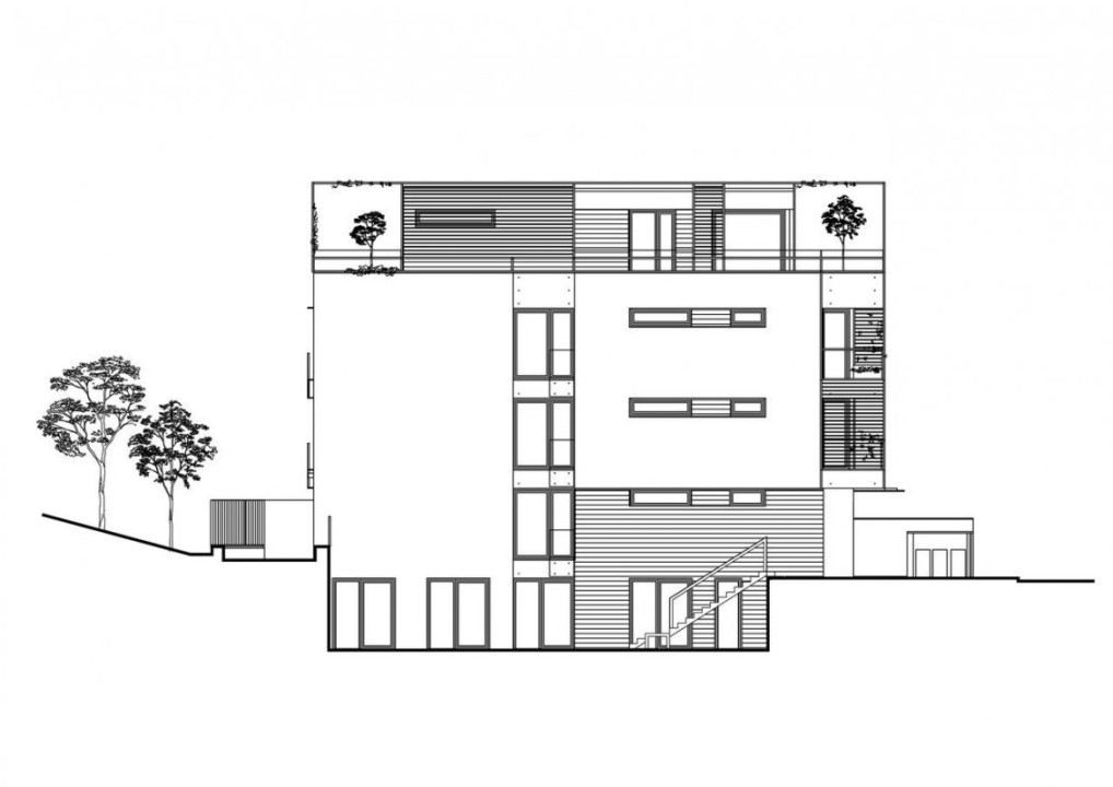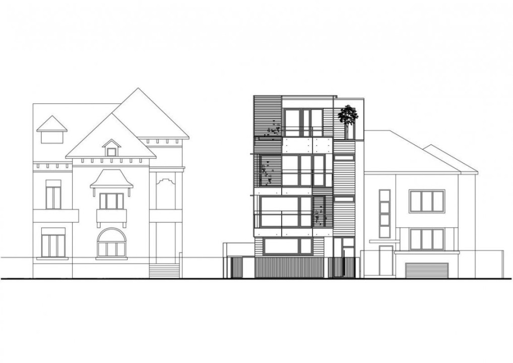 Cladirea pe 4 nivele are cate un apartament pe etaj si un subsol cu curte englezeasca. Această clădire a înlocuit o clădire veche fără valoare arhitecturală și cu serioase probleme structurale. Scopul proiectului a fost o casă „vie” capabilă să ofere senzații vizuale, tactile și olfactive, cu grădină – terase și „chiriași de copaci”, cu spaliere pentru plante cățărătoare și suporturi pentru flori de caprifolium. În timp, toate cele de mai sus ar putea forma „structuri bio-piele vii”, acționând ca dispozitive de răcire. Trecerea spațiului exterior / spațiului public al orașului și spațiul interior / personal este filtrul arhitectural al clădirii . Terasele sunt elemente prețioase care mediază și articulează interacțiunea dintre spațiul colectiv și spațiul singular.