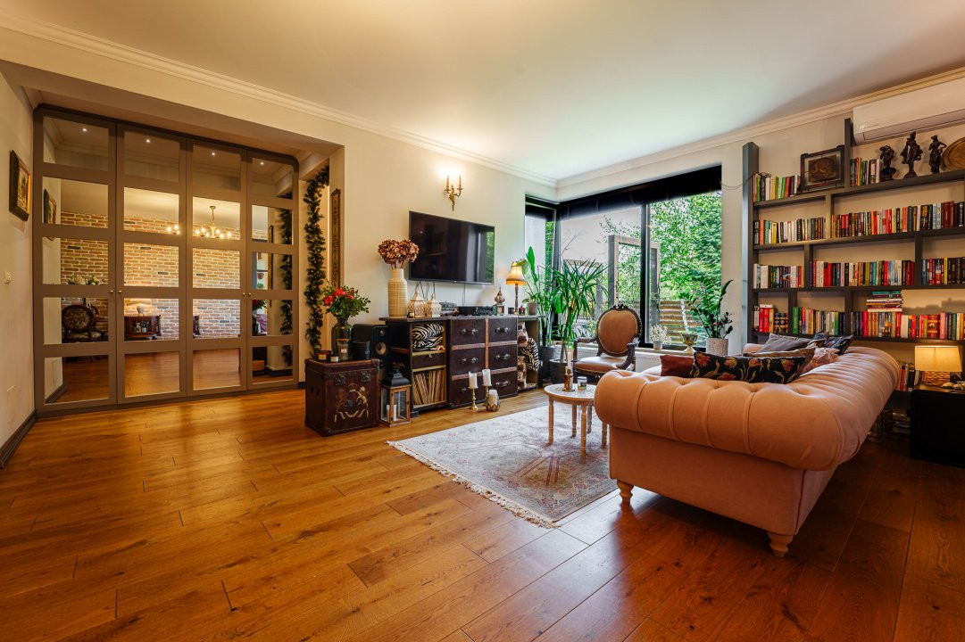 Interiorul impresionează prin finisajele de calitate superioară și designul atent gândit, care conferă unicitate acestei vile. Livingul este spațios,primitor, ideal pentru momente de relaxare si inca,ntaor pentru cei care prefera lemntul . Bucătăria complet echipată cu mobilier și electrocasnice de calitate se îmbină armonios cu zona de dining, care oferă o priveliște superbă spre grădină. Pentru momentele petrecute în aer liber, terasa exterioară este perfect amenajată pentru relaxare.