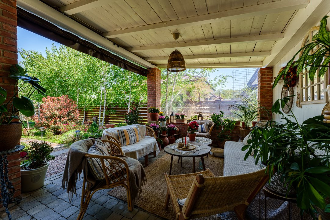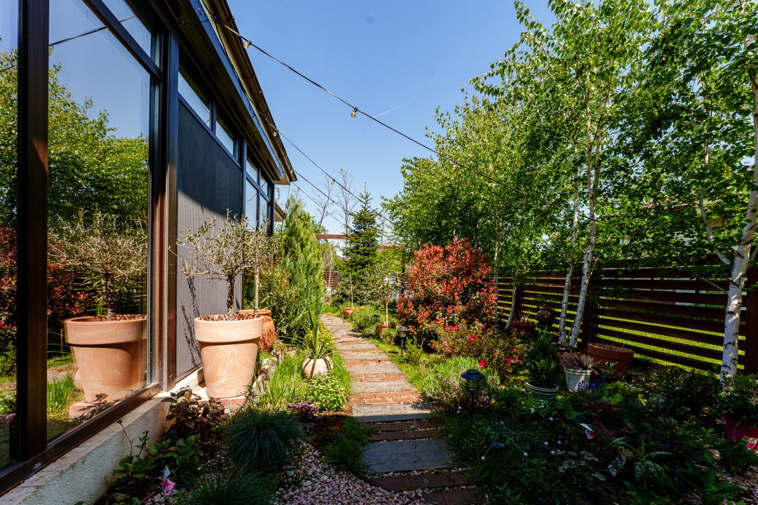 De cum pășiți în curte, veți fi întâmpinați de un peisaj plin de rafinament: plante decorative, pomi maturi ce oferă umbră și intimitate – toate alese cu atenție de un peisagist, pentru a crea o grădină cu adevărat specială. Curtea beneficiază de sistem de drenaj, aspersoare automate și sistem de supraveghere video.