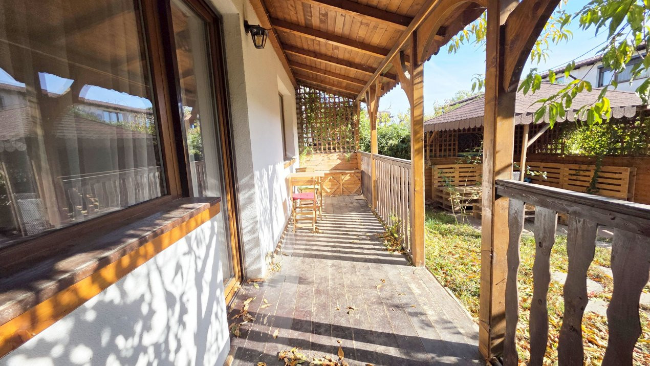 In plus, curtea este o adevarata oaza de relaxare, atat prin existenta terasei acoperite cu acces in si din living si a foisorului. Si totul se completeaza cu atmosfera tihnita a cartierului locuit de oameni de calitate. Totul la doar 30 de minute de Piata Unirii.