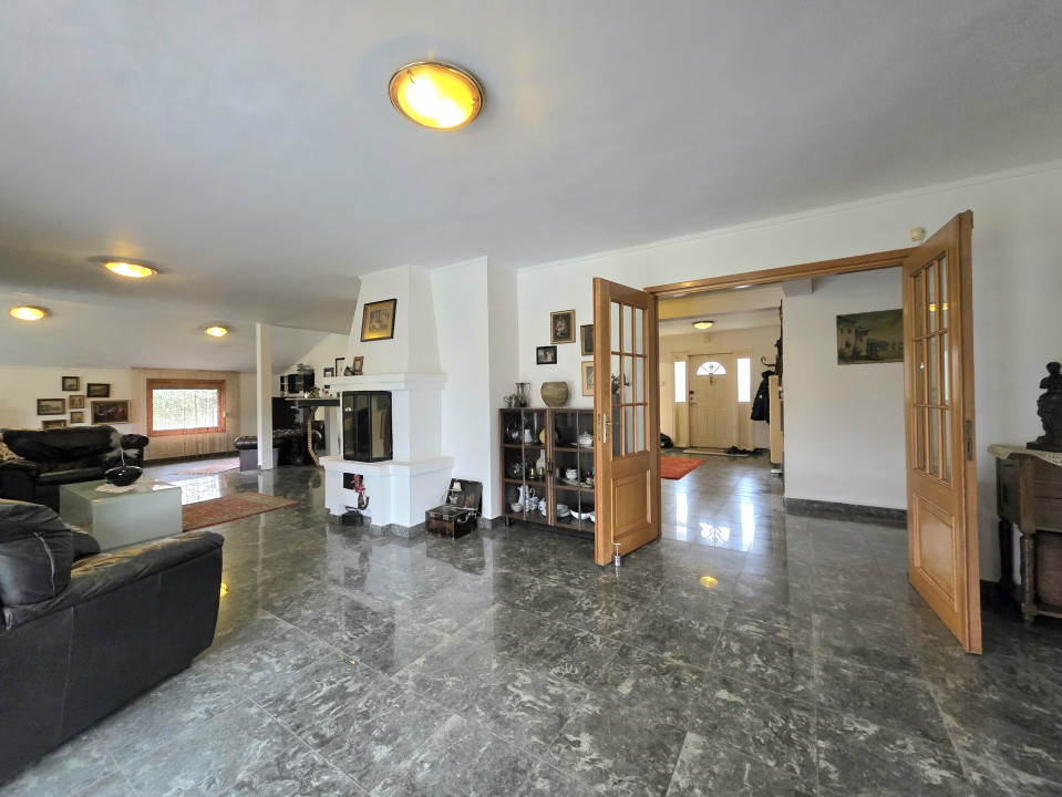 Fiind construită pe un teren mare, locuința beneficiază de o amprentă la sol generoasă, fără compromisuri în ceea ce privește spațiile interioare. De la intrare vă veți bucura de camere luminoase și foarte spațioase, de la bucătărie până la dormitoarele de la etaj.