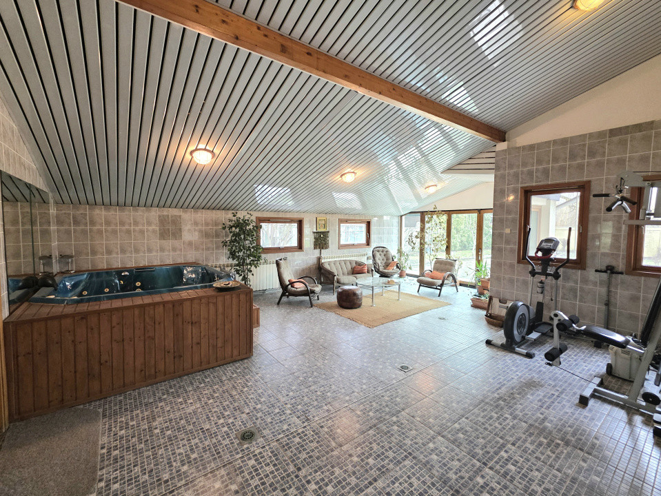 Această casă este ideală pentru persoanele active și preocupate de sănătate, deoarece dispune de facilități proprii de tip SPA: saună, sală de sport și jacuzzi. Vă puteți relaxa oricând doriți, chiar la voi acasă, fără timp pierdut în trafic.