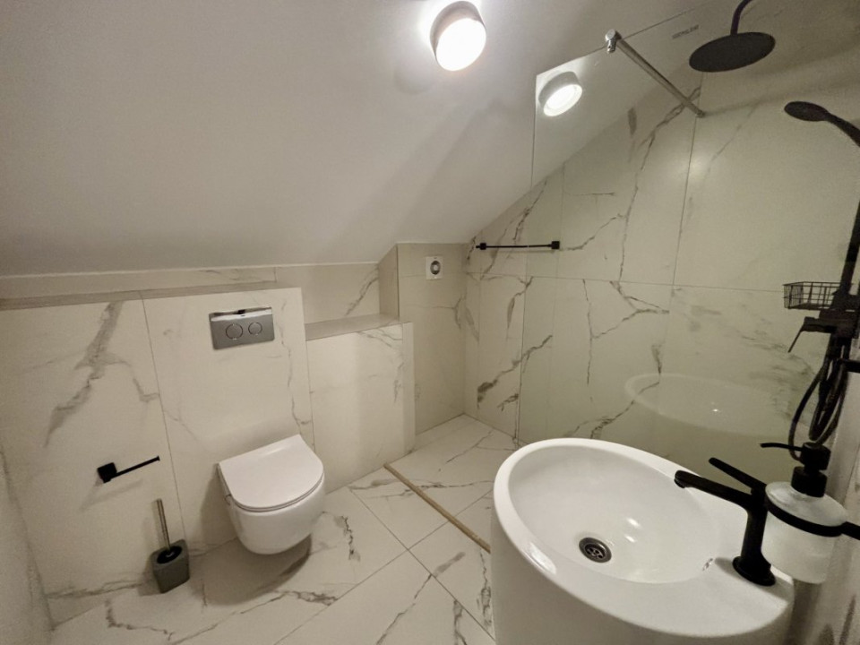 - **Băi Moderne**: Trei băi complete dotate cu cabine de duș, cadă și baie de serviciu, pentru confortul dumneavoastră.