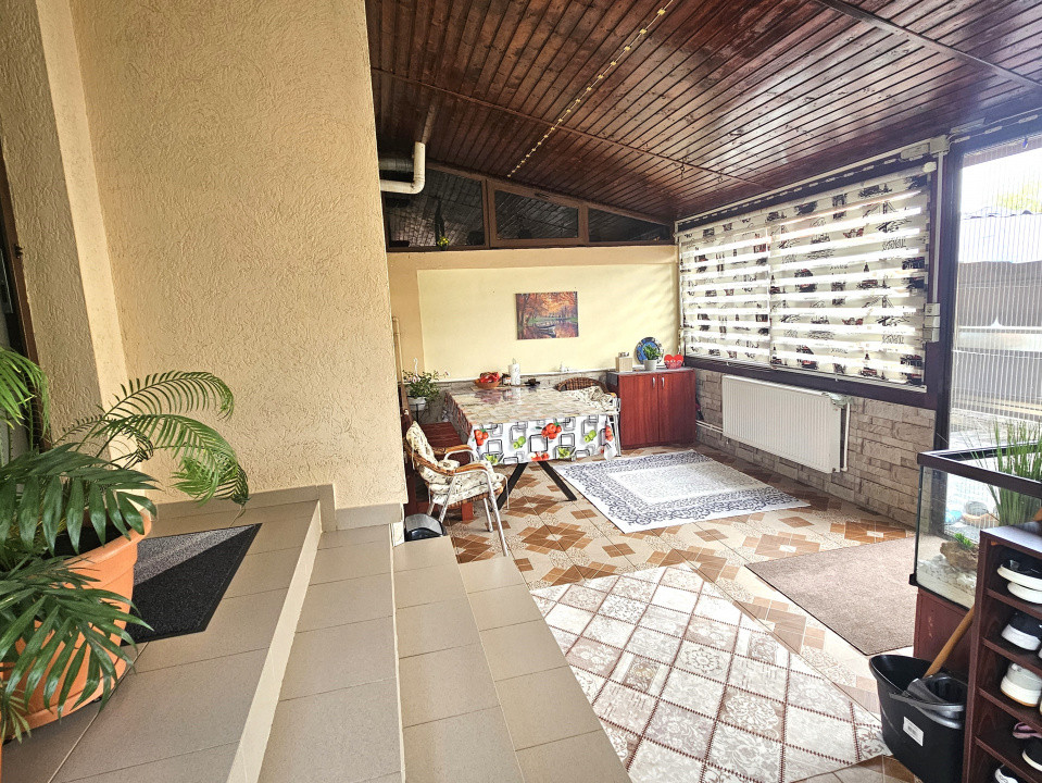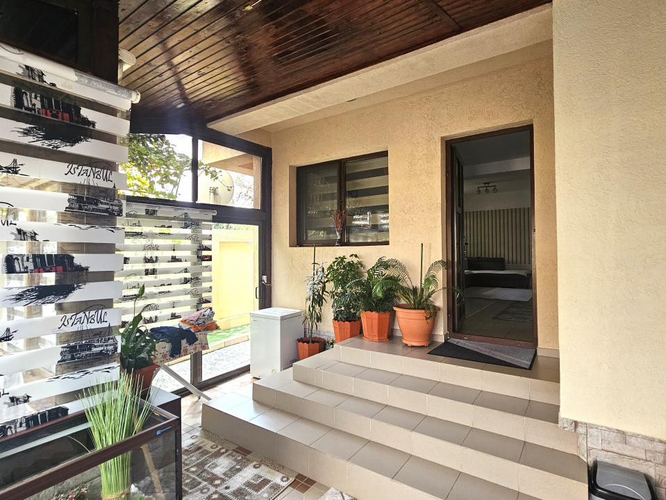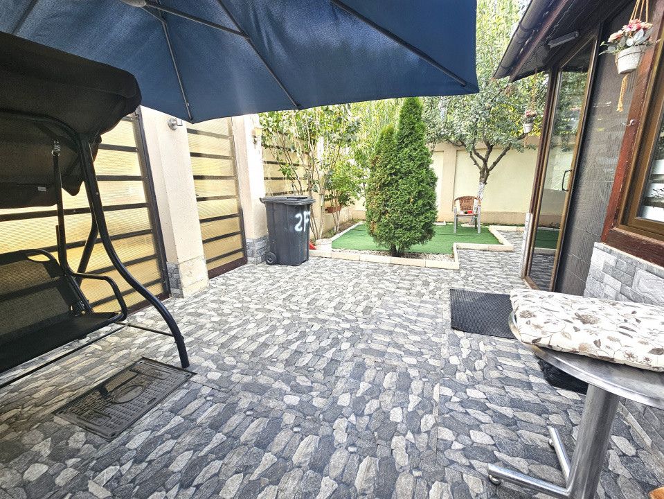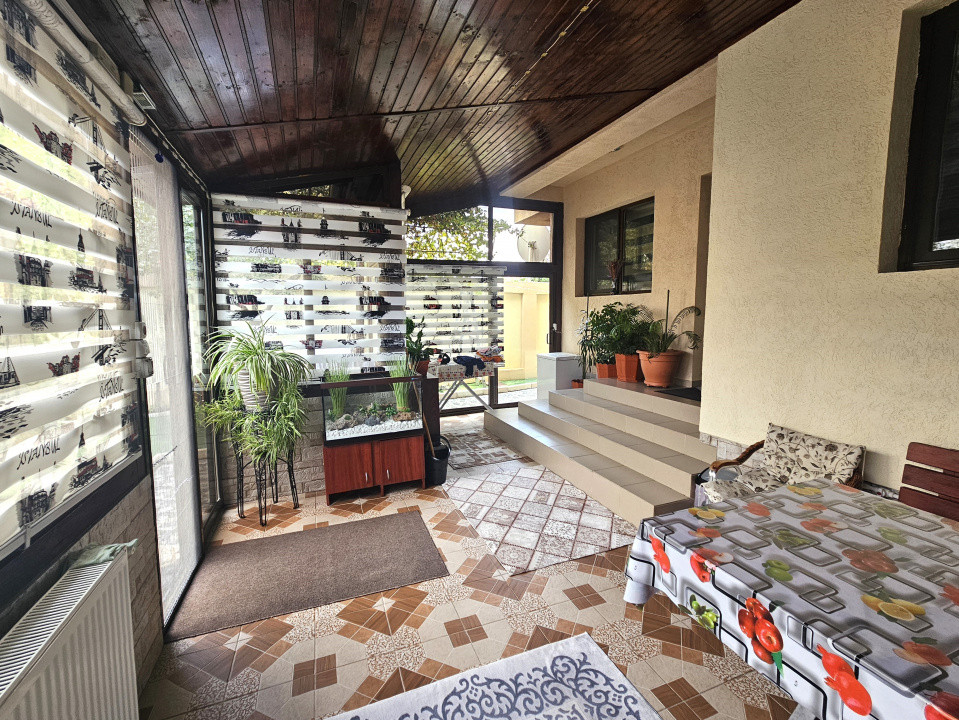 Gradina este amenajata astfel incat sa va ofere un spatiu de relaxare optim, proprietarii au mai construit o bucatarie de vara si spatii de depozitare. Casa mai are o terasa inchisa care este suficient de mare, iar aici va puteti relaxa cand vremea este mai rece.