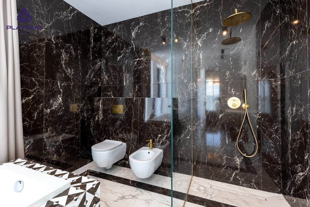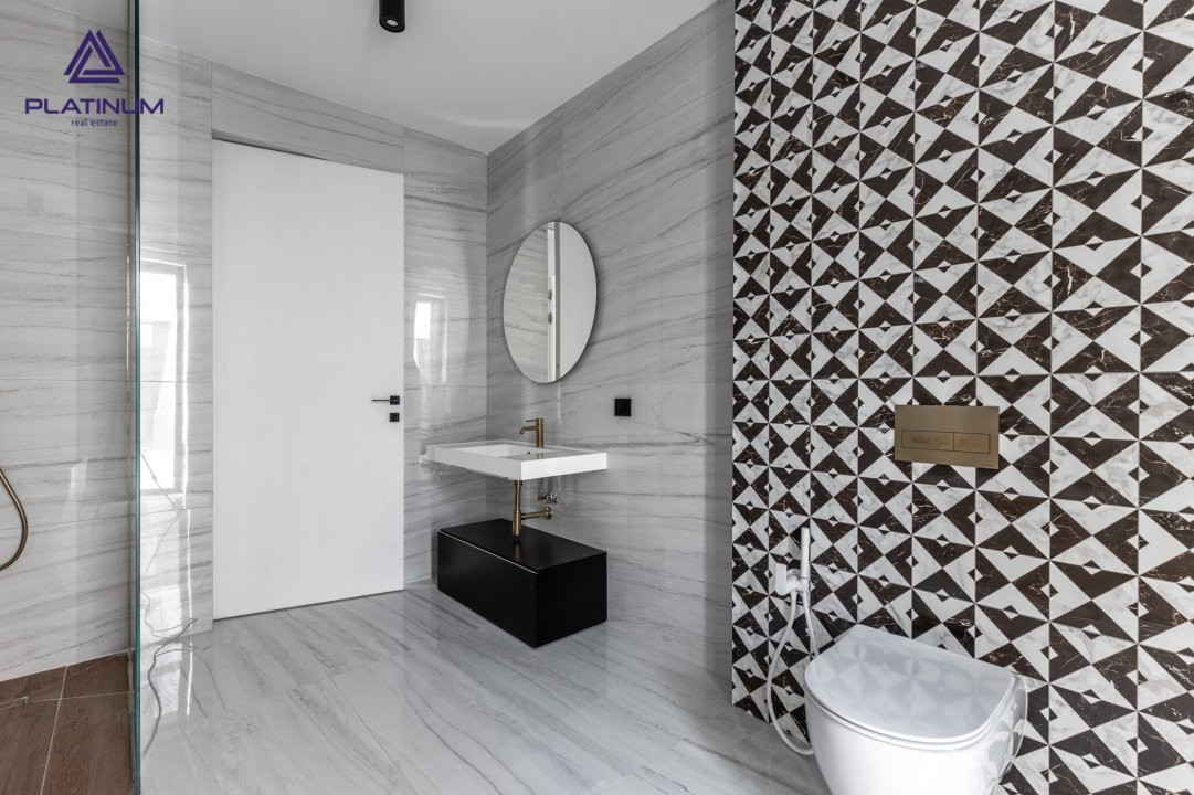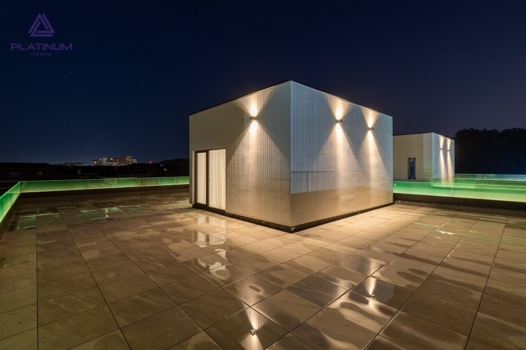 • Terasa circulabila cu grup sanitar – suprafata terasa 169.74 mp cu posibilitatea de a se amenaja zona de relaxare, zona de luat masa, zona de grill. Balustrada de sticla iluminata cu led;