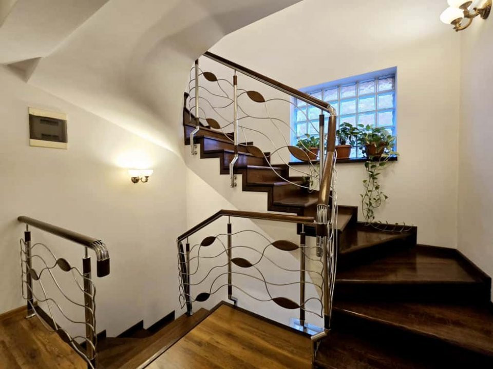 - Scară interioară din lemn masiv – Îmbrăcată cu lemn masiv, având mâna curentă din lemn si inox pentru un aspect modern și sofisticat.