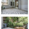 Desi fatada este orientata catre unul dintre bulevardele importante ale capitalei, in apropiere de Ambasada Republicii Elene, vila beneficiaza de o terasa intima cu deschidere catre gradina din spatele casei, lucru greu de gasit in inima Bucurestiului.