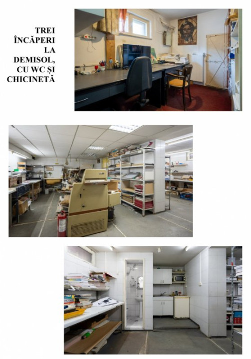 La demisol: garaj, trei încăperi cu wc și cu o mică bucătărie, adăpost antiaerian și camera centralei.