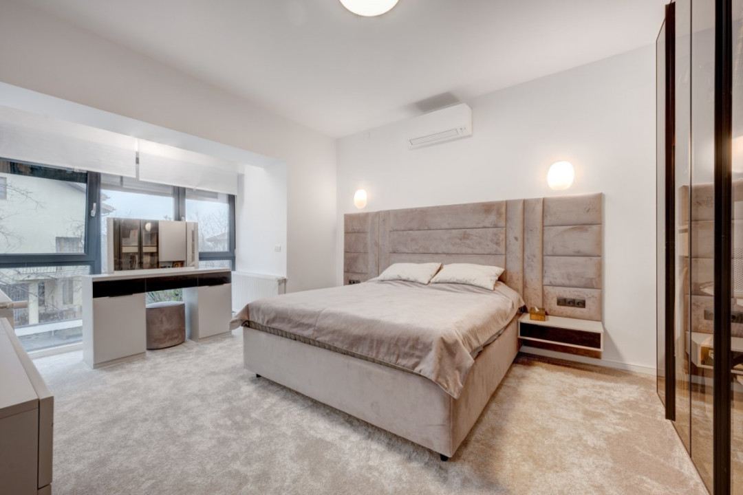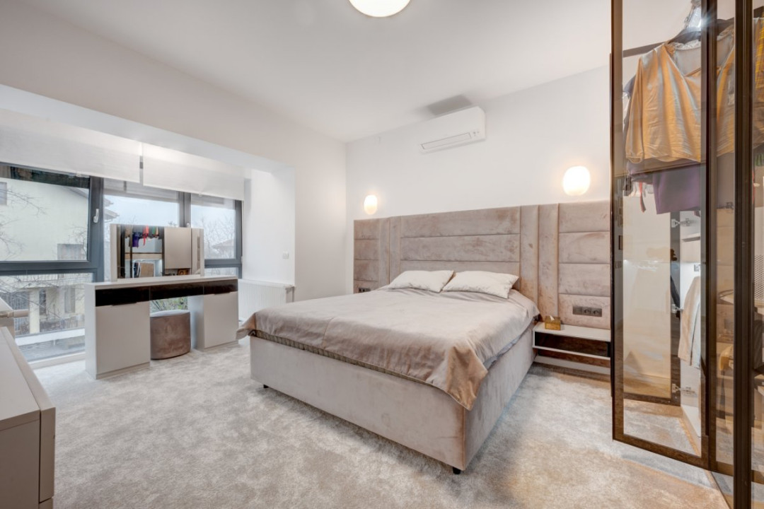 Descoperă eleganța și confortul intr-o vilă modernă, situată intr-o zonă liniștită din Campul Pipera, perfectă pentru o familie care iși dorește un stil de viață premium, aproape de natură și de facilitățile orașului.Această vilă reprezintă echilibrul ideal intre confort, tehnologie și eleganță, fiind locul perfect pentru o familie care iși dorește un cămin modern și funcțional, intr-un cadru natural și relaxant, la 10 minute de Promenada Mall si zona de birouri Barbu vacarescu. Smart Home, finisaje lux, compartimentare eficienta, zona linistita.