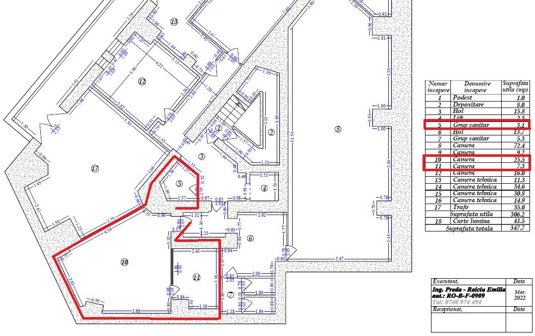 Inaltimea spatiului in acest moment este de 232 cm dar cu posibilitate de inaltare pana la 282cm.
