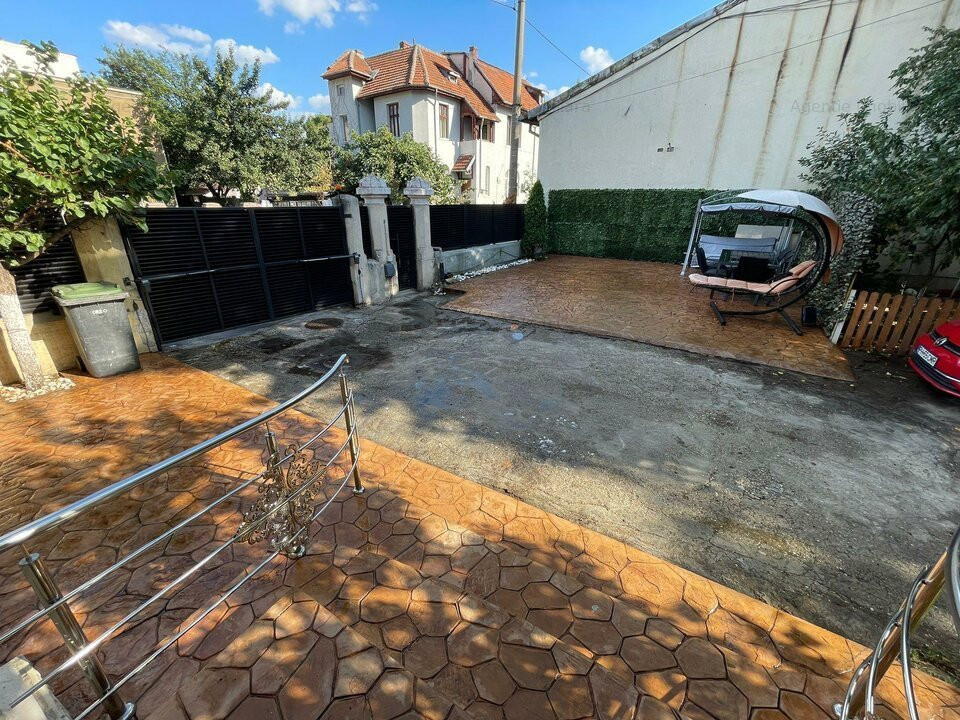 Curtea este comunca din care aprox 100 mp revin proprietatii noastre unde este amenajat un loc de relaxare sau se poate parca 1-2 masini.