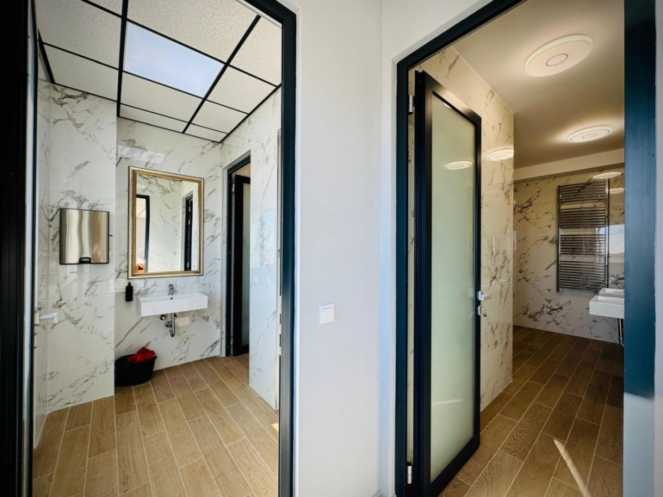 o Construcție adițională (sediu firmă + locuință de serviciu): P+S, 241,3 mp la sol, 411,3 mp desfășurați (living, 3 dormitoare, 4 băi, terasă) – construită în 2021