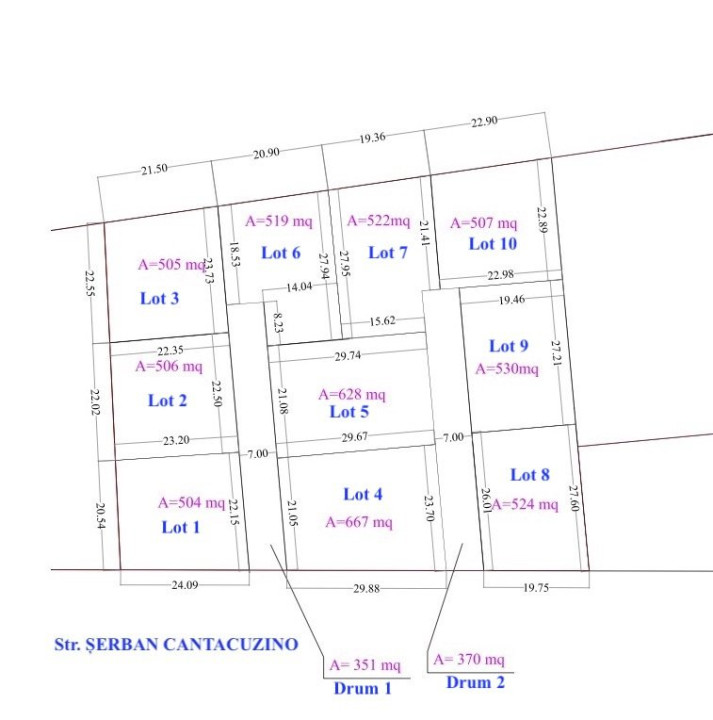 Câteva loturi au deschidere la str. Șerban Cantacuzino, iar celelalte sunt în interior și vor avea deschidere la drumul de acces cu o lățime de 7m. Distanța de la stradă la loturile de interior variază între 22m și maxim 50m.