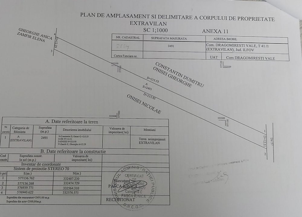 Terenul apartine de Dragomiresti-Vale si are o singura deschidere la drum.