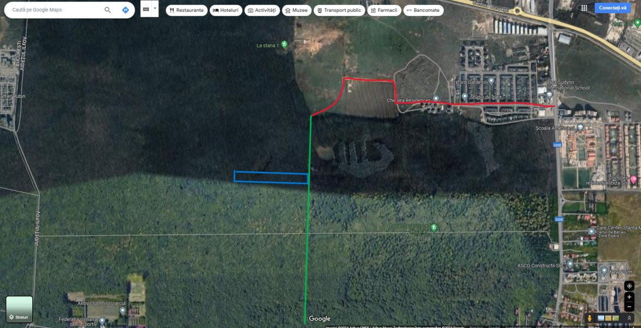 Linia verde = drum de acces (forestier).